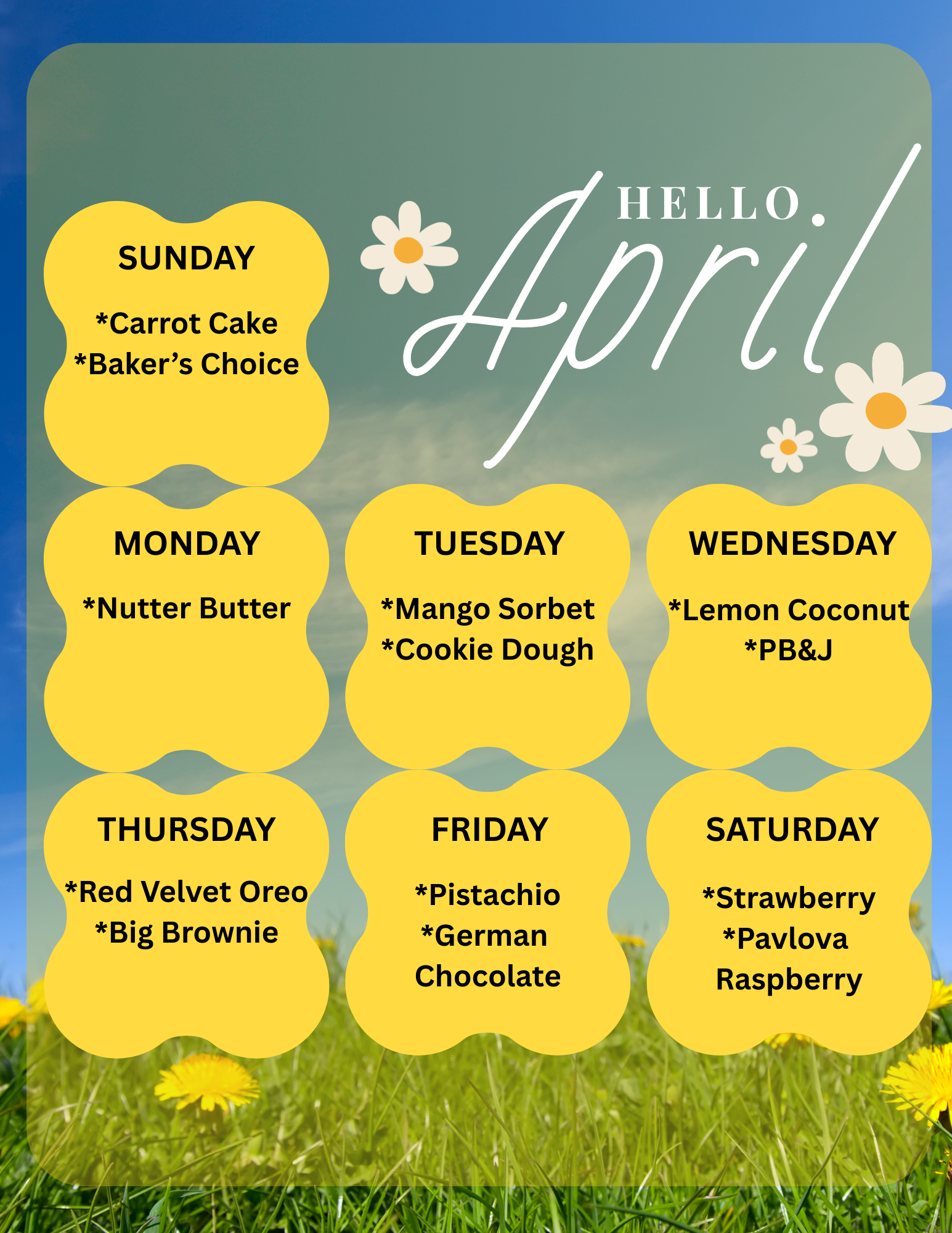 Stop by to try our new and delicious April specials. These limited-time flavors are baked fresh daily—get them while they last this month only! ✨